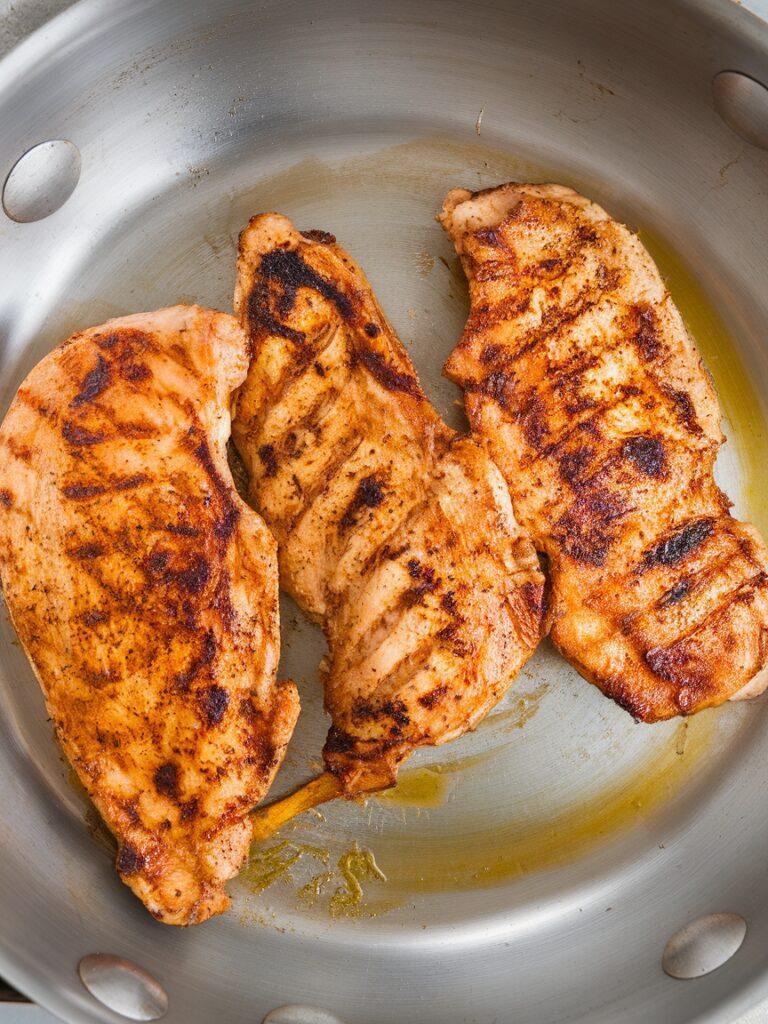 - Cook the Chicken: Heat 1 tbsp oil in a large pan over medium heat. Add the chicken and cook for 4-5 minutes on each side, until the internal temperature reaches 165°F. Remove from the pan and let rest.